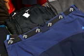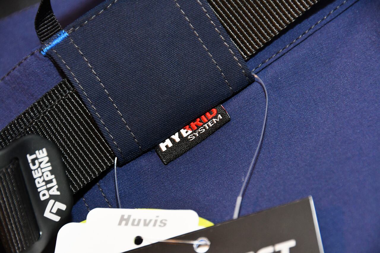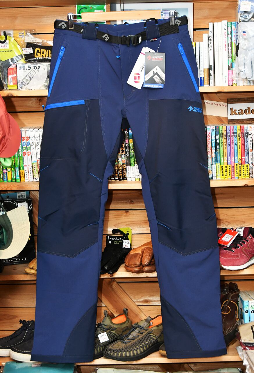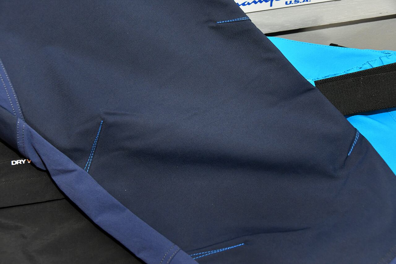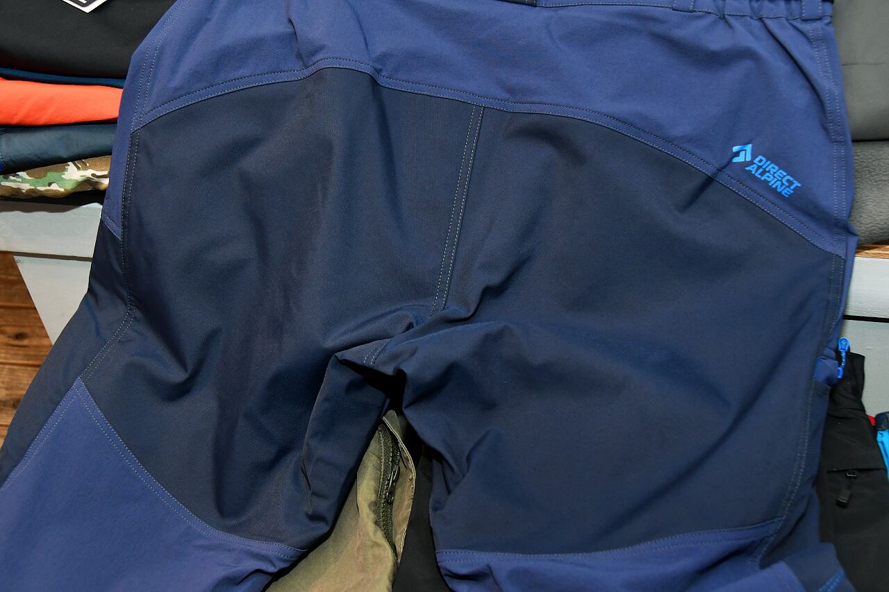 中厚手のソフトシェルパンツ 濃いネイビー部分は補強生地になっています