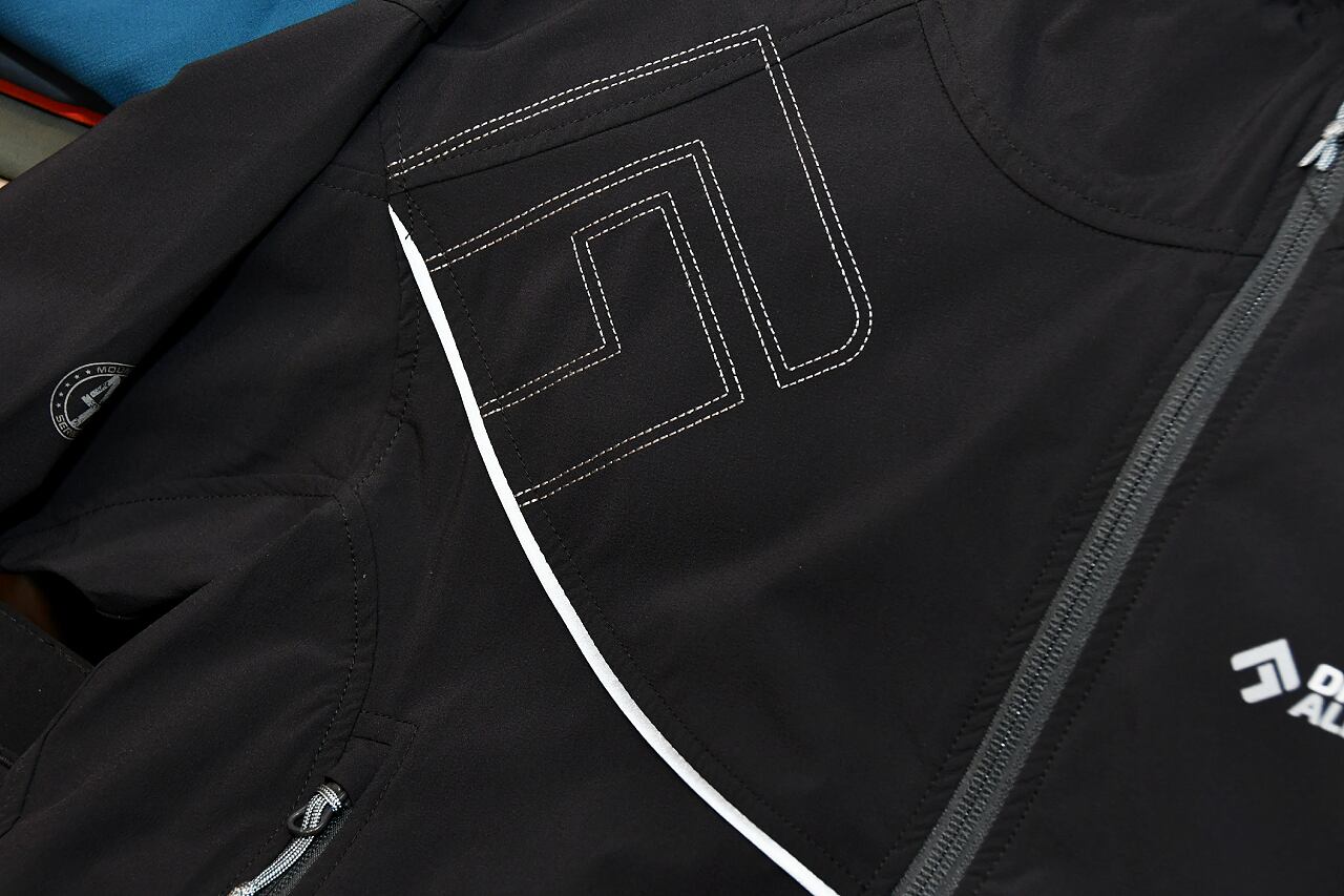 薄手ストレッチ生地のソフトシェルジャケット 斜めジップ CORDURA サムホール