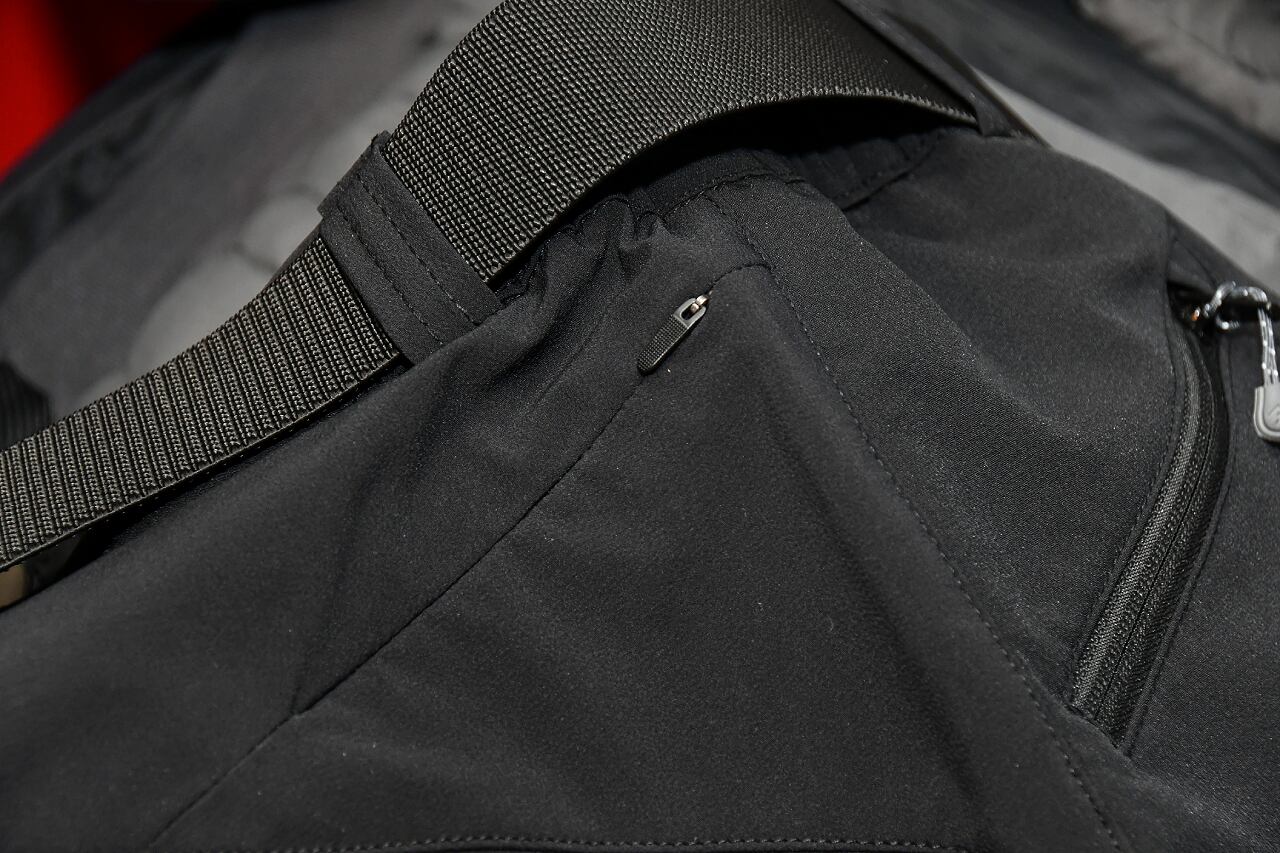 裾はボタン、ファスナーで拡張可能 無段階調整ベルト(ベルト自体もストレッチ)