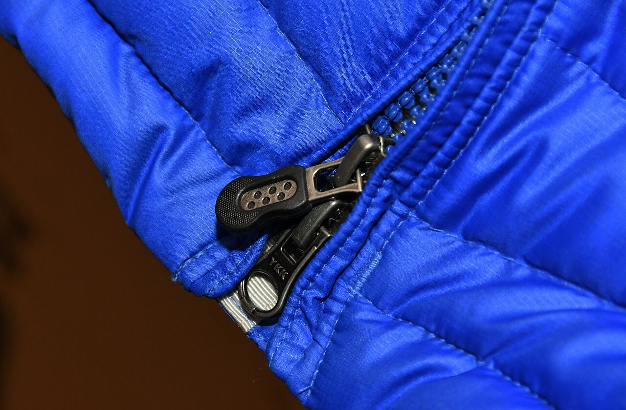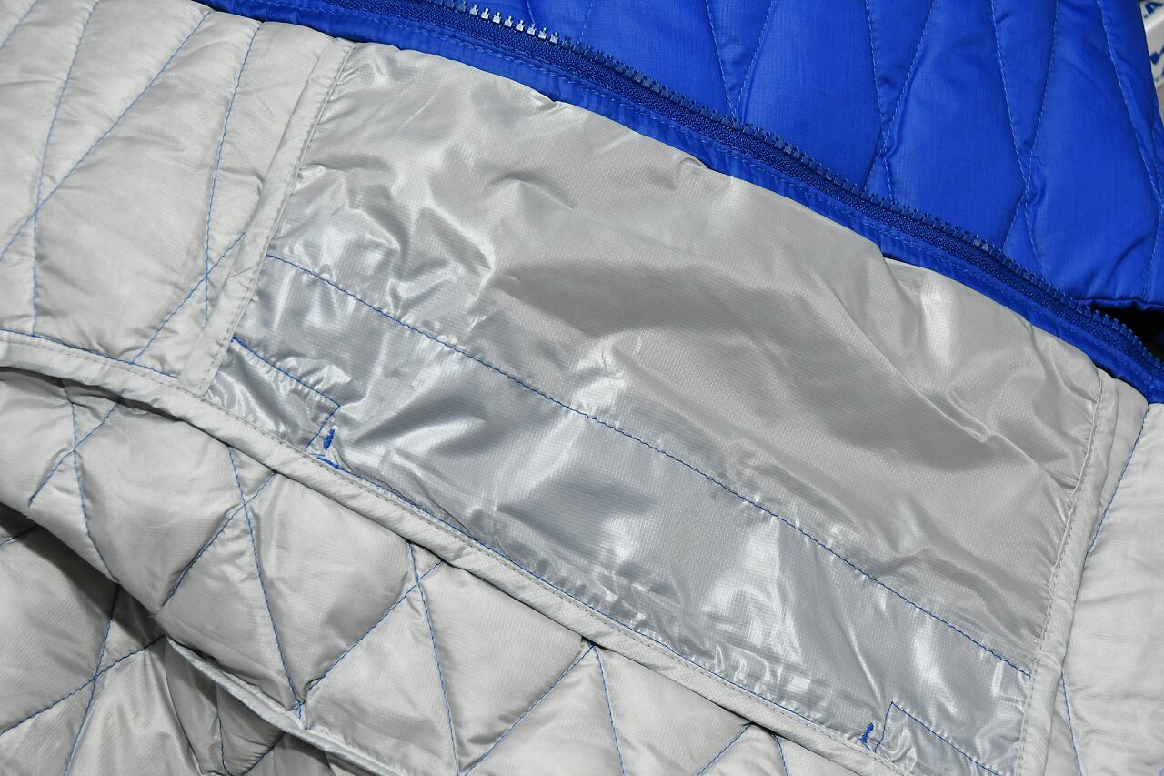 薄手のロング丈ダウンジャケット メインファスナーWジップ 内ポケット