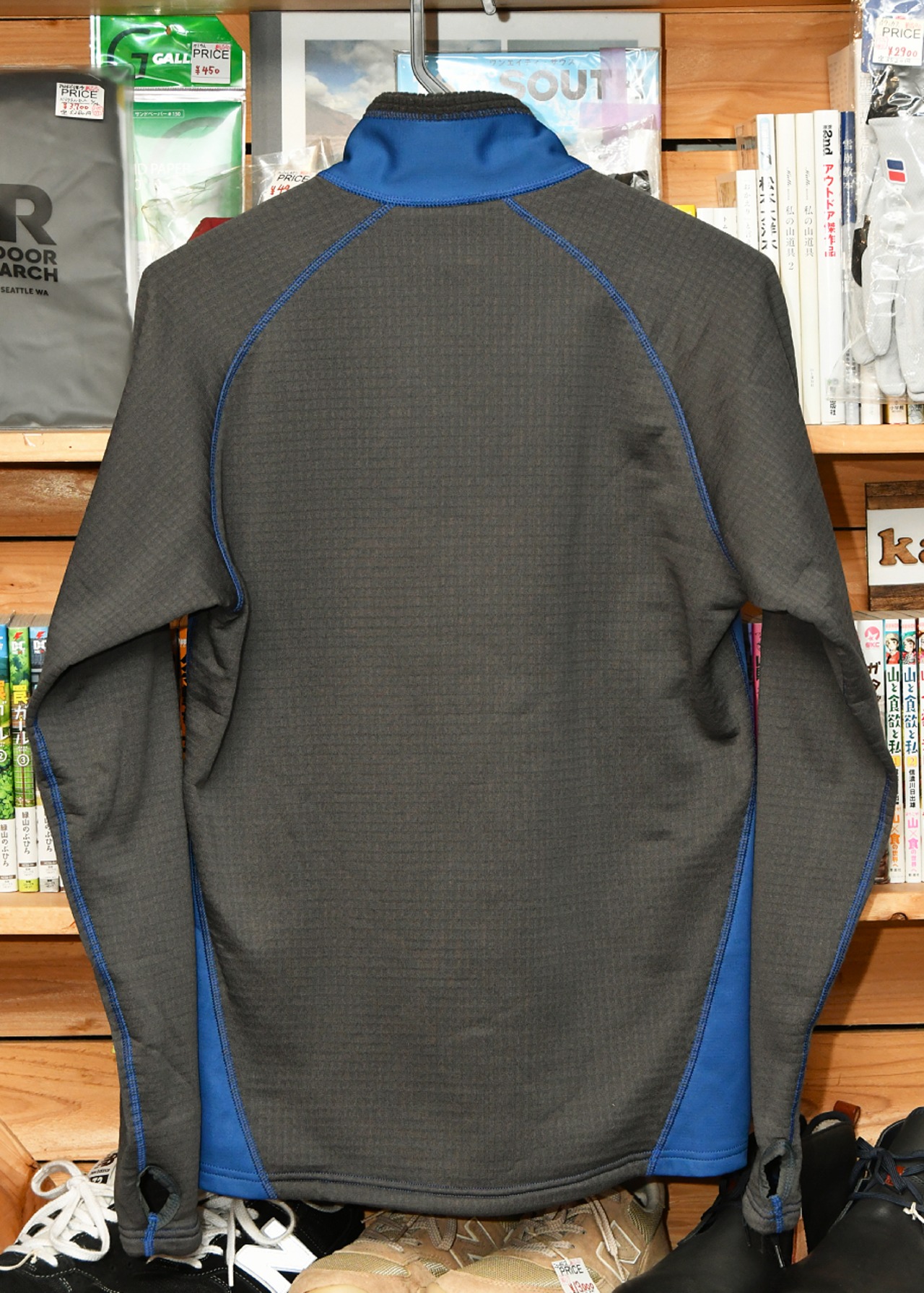 ソフトシェル素材とグリッドフリース素材のハイブリッドジャケットです。胸のポケットはベンチレーション機能兼務 袖口にはサムホール付
