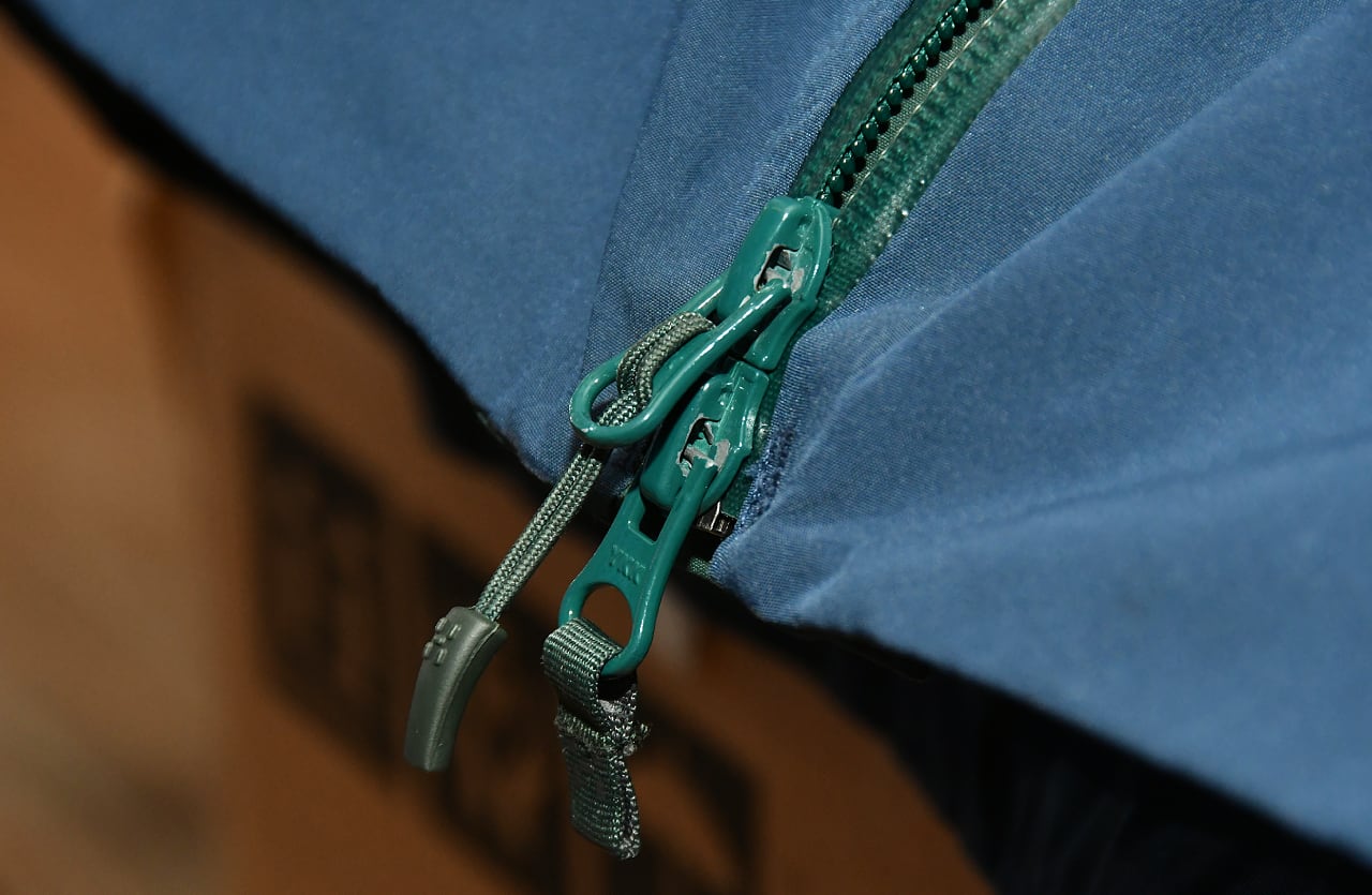 通常左右位置にファスナー付ポケット 左胸にファスナー付きポケット 左袖にICカード用ファスナー付き小ポケット 脇下にベンチレーション機能(Wジップ仕様) メインファスナーはWジップ仕様 袖にベルクロ ヘルメット対応大型フード 取り外し可能なパウダーガード付